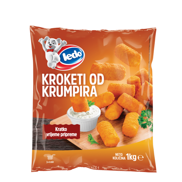 Ledo Kroketi od krompira napravljeni su od blago začinjenog krompirovog tijesta u obliku malih valjaka, koji su uvaljani u mrvice hljeba i upravo zbog njih imaju neodoljivo hrskavi okus. Odličan su prilog uz mesna jela s bogatim umacima od gljiva, različitih vrsta sira, bešamela ili paradajiza.