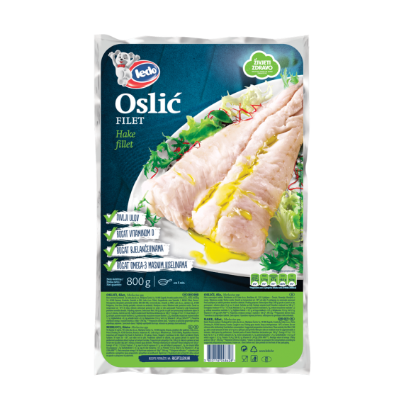 Ledo oslić filet pripada liniji proizvoda ribljih fileta od 100% ribljeg mesa. Ledo Oslić dolazi iz divljeg ulova, izvor je vitamina D i bogat je bjelančevinama te omega 3 masnim kiselinama.