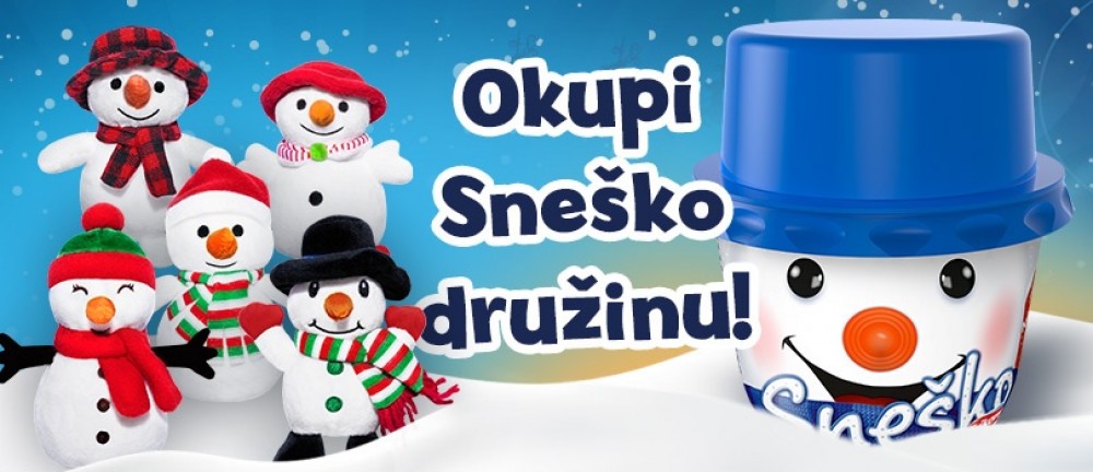 Kupite sladoled Sneško čašica i pronađite naljepnicu koja se nalazi u poklopcu. Sakupite pet naljepnica, zalijepite ih na talon i pošaljite ga na našu adresu, a mi ćemo vam poslati poklon – plišanog sneška kojeg izaberete!