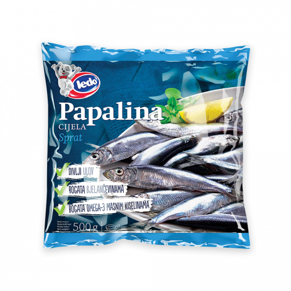 Ledo Papalina dolazi iz divljeg ulova, bogata je bjelančevinama i omega 3 masnim kiselinama. Papalina je vrlo popularna u mediteranskoj kuhinji. Može se jesti cijela s kostima pri čemu se u organizam unosi dodatna količina kalcijuma. Ledo papalina dostupna je tokom cijele godine i vrlo je jednostavna za pripremu. Namijenjena je ljubiteljima male, sitne ribe te se odlično uklapa u ribarske večeri i zabave.