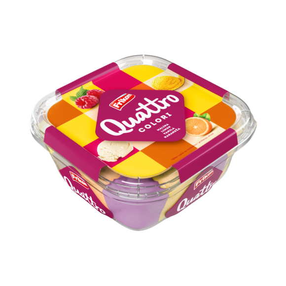 Još jedna inovacija u Quattro portfoliju obradovaće sve ljubitelje voćnih ukusa! Quattro Colori Fruit donosi neodoljivu kombinaciju osvježavajućih ukusa: maline, limuna, vanile i narandže! Ukusi su raspoređeni u 16 sladolednih polja i sada je uživanje u svim ukusima moguće samo jednim potezom!